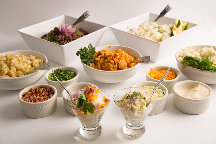 Gluten Free Station : Polenta, quinoa, rice pasta, sweet potato and risotto from Wendy Krispin Caterer.