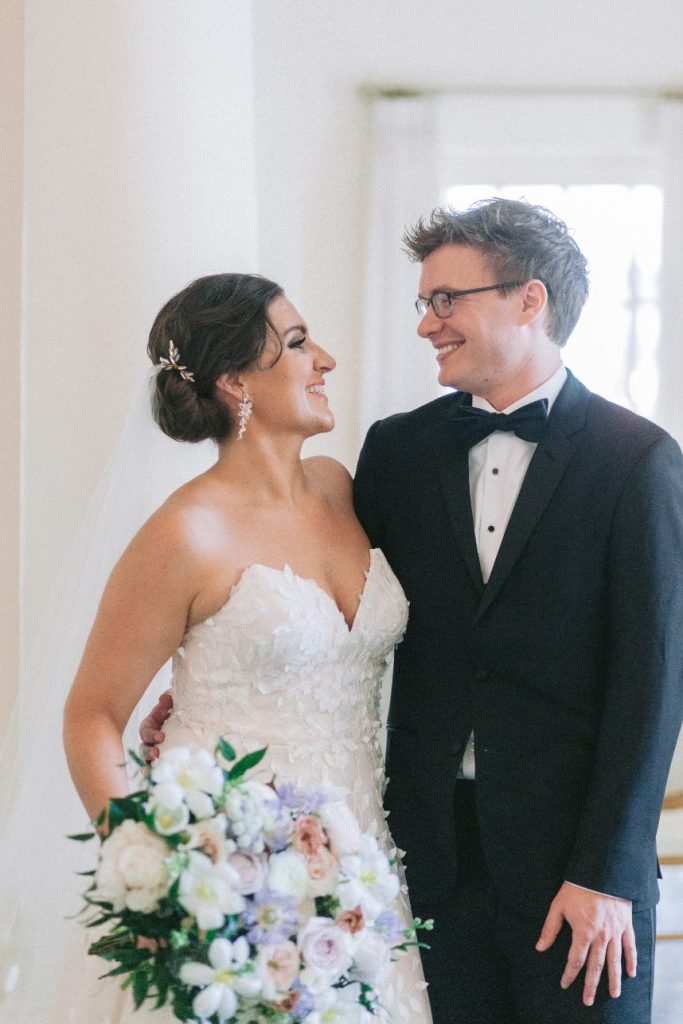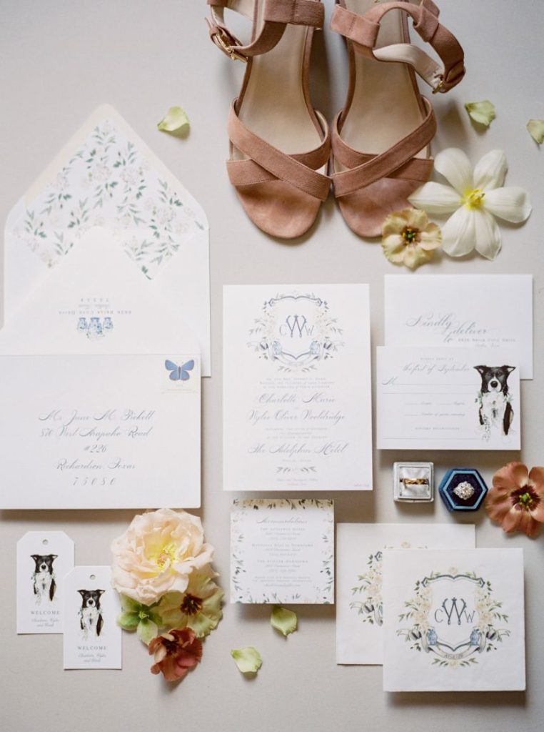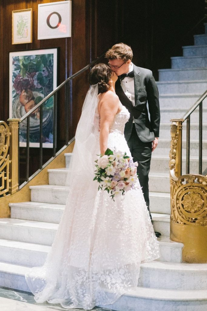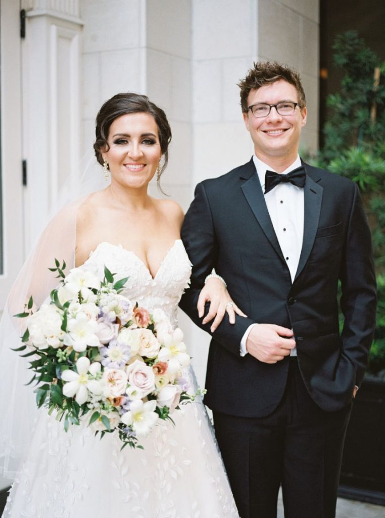 In our opinion, you can never go wrong with a navy blue and lavender color palette, and Charlotte and Wylee’s traditional ballroom wedding planned by Engaged Events is no exception! The Adolphus Hotel was nothing short of extraordinary when it came to being this wedding’s venue – from catering, to hosting the bridesmaids’ luncheon, to serving as their accommodations, to having some of the most stellar service and hospitality – it also just so happens that their ballroom was the most gorgeous space for this ceremony and reception to be hosted. Something Pretty Floral brought in a fresh component by brightening up the space with their stunning lavender, blush and ivory florals in the bouquets and beautiful centerpieces. Charlotte’s sweetheart-cut, ballgown style gown from LeAnn’s Bridal with intricate floral lace details, paired with her flawless up-do and natural makeup look by The Styling Stewardess left her looking and feeling like the most lovely bride. There’s always nothing but good vibes from Royal Dukes Band, and this couple realized that from the moment they started playing the first song at their reception (scroll to read the story!). We can’t get enough of this sweet couple and their traditional ballroom wedding! Cheers to the Mr. and Mrs.!