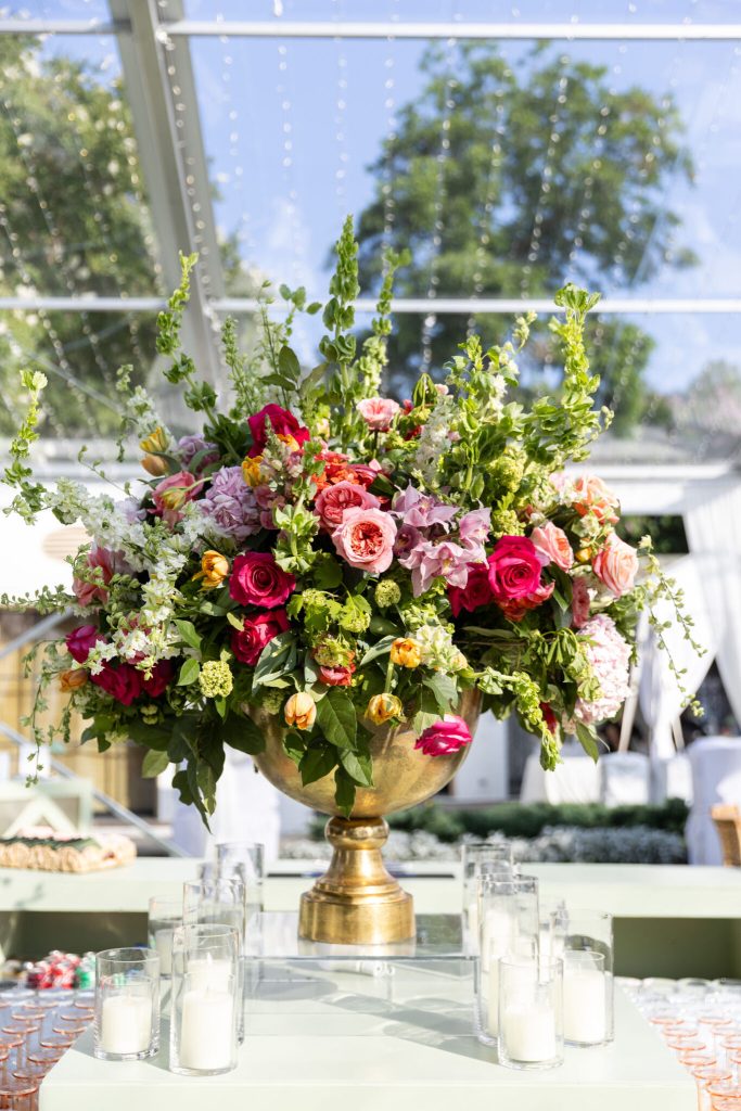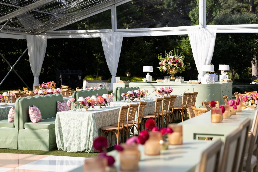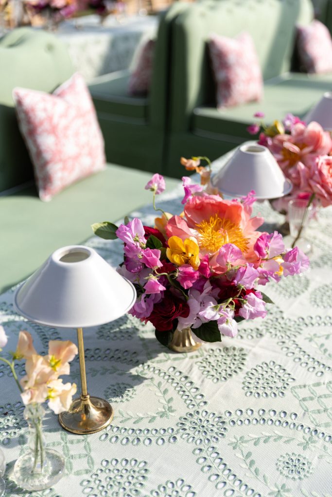 Every detail was carefully curated. Soft, romantic linens from Nuage Designs and BBJ La Tavola dressed the tables, while rentals from Posh Couture Rentals and Perch Event Decor added warmth and polish. Lush florals popped in cheerful hues, creating a garden-inspired atmosphere full of life.