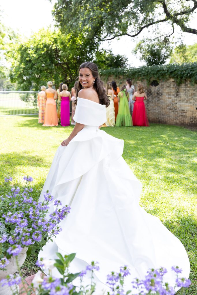 Scout looked radiant in her Warren Barron Bridal gown, and guests enjoyed a delicious menu prepared by Vestals Catering. The entire event took place on the beautifully manicured grounds of the Dallas Arboretum, adding a natural charm to the day.