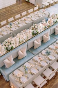 When designing your wedding, you’ll want to rent items like dinnerware, chargers, flatware, and glassware. This is where you can mix and match your dream color scheme to create the perfect, inviting spot to make each and every guest feel special!