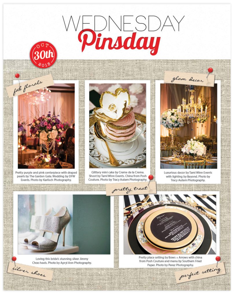 Every girl deserves an over-the-top glam wedding! We love all these sparkling, glittery, bedazzled details found on our Pinterest page. From fab florals to luxe shoes, we have plenty of girly inspiration for you. Happy Pinsday!