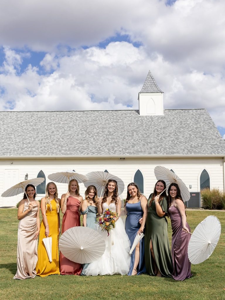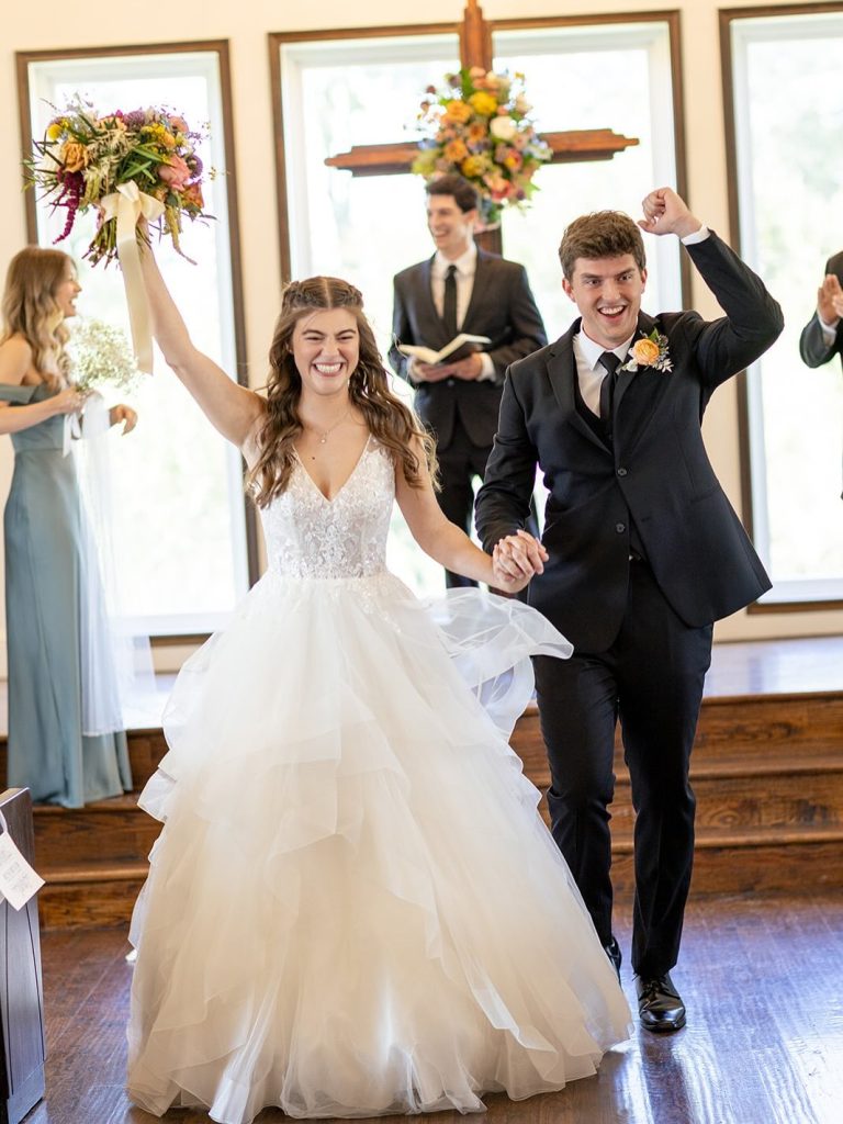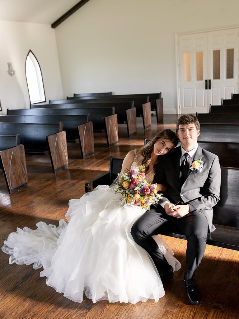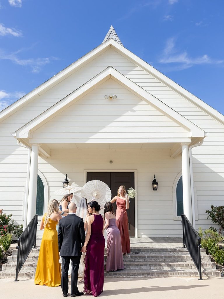 This charming wedding mixed playful garden flowers with classic chapel style. Bright blooms and elegant tables made each detail feel special. The couple shared heartfelt vows in a sunny ceremony. Guests enjoyed a fun escort card display and a sweet dessert table. Sweet kisses and a joyful exit made this day one to remember. This wedding is perfect inspiration for couples dreaming of a colorful, happy celebration.