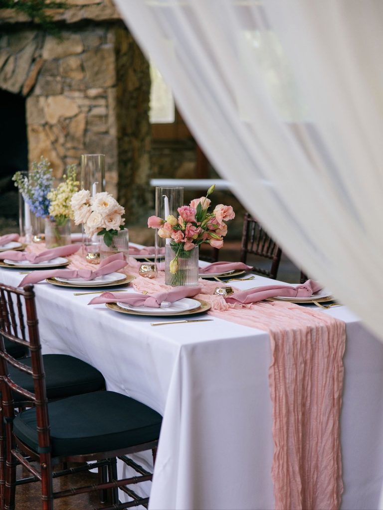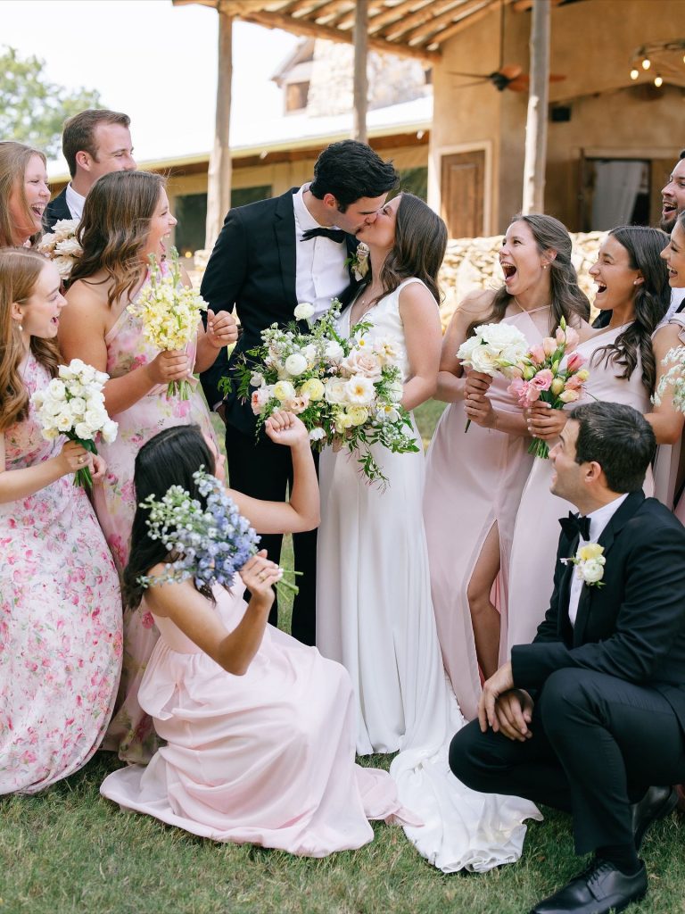 This Texas wedding was full of romantic charm, beginning with a heartfelt chapel ceremony surrounded by glowing wood-framed windows and lush garden florals. The bride and groom shared sweet, easygoing moments throughout the day, captured beautifully among blooming pastels and abundant greenery. Reception tables were dressed in soft pink runners, candles, and petite garden blooms, creating an intimate, whimsical atmosphere. Surrounded by their closest friends—who brought unmatched energy—this celebration overflowed with joy, color, and love. A dreamy blend of timeless elegance and soft spring charm.