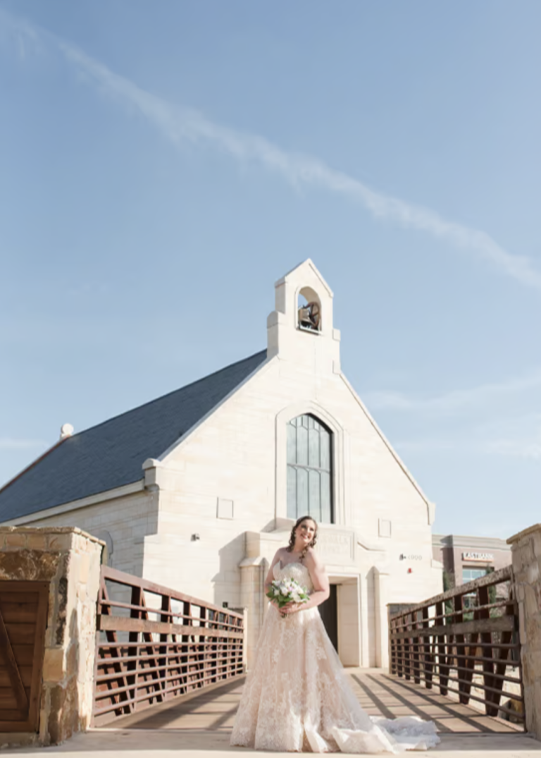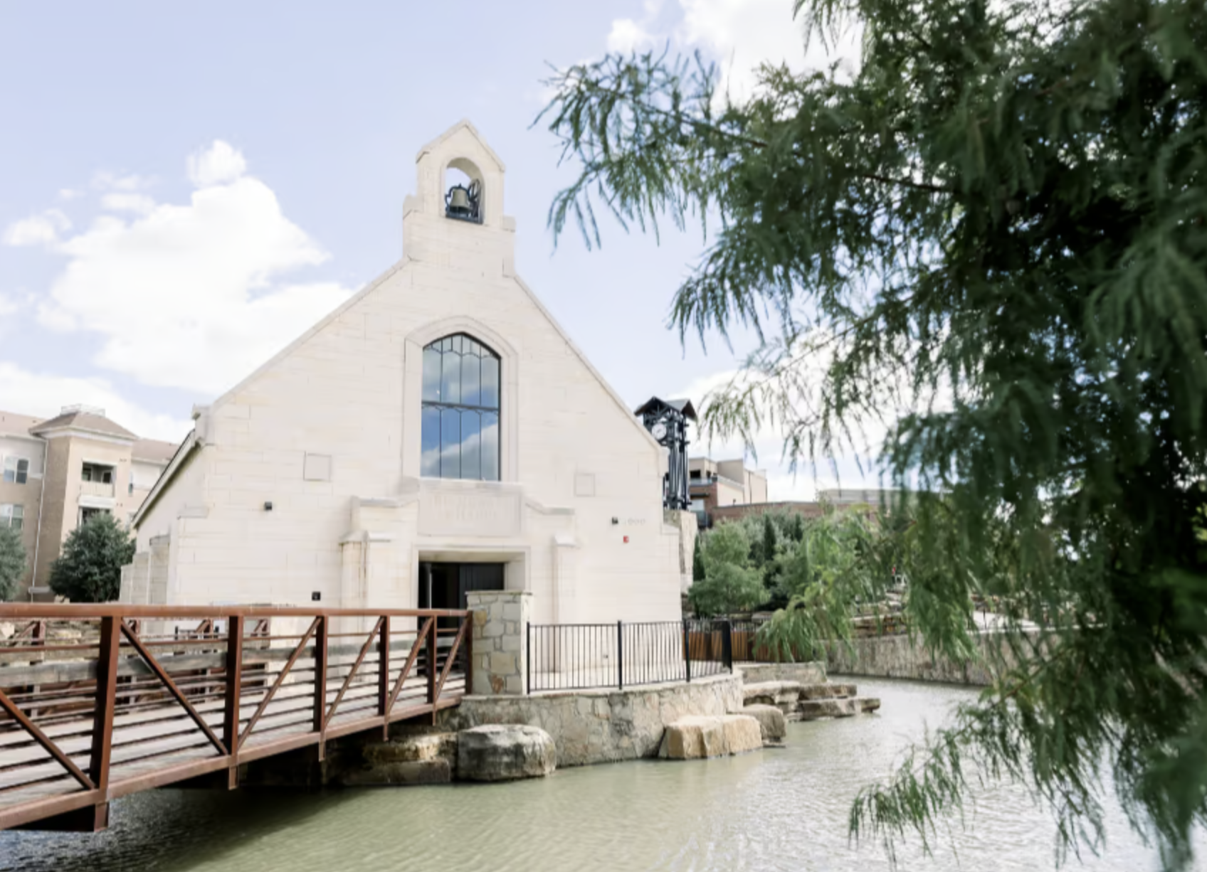 Designed with meticulous attention to detail, Chapel at Riverwalk, Flower Mound, was crafted with story-book weddings in mind. Our timeless wedding chapel is surrounded by serene water, with a bridge connecting it to the reception hall, which features an outdoor terrace with waterfall and river views. The contemporary yet timeless wedding chapel features Romanesque architectural details. The expansive balcony is the perfect vantage point for your photographer or ceremony musicians. The chapel is surrounded by serene water and the outdoor photo opportunities are exceptional.