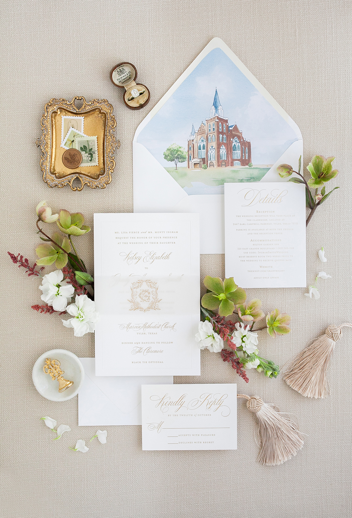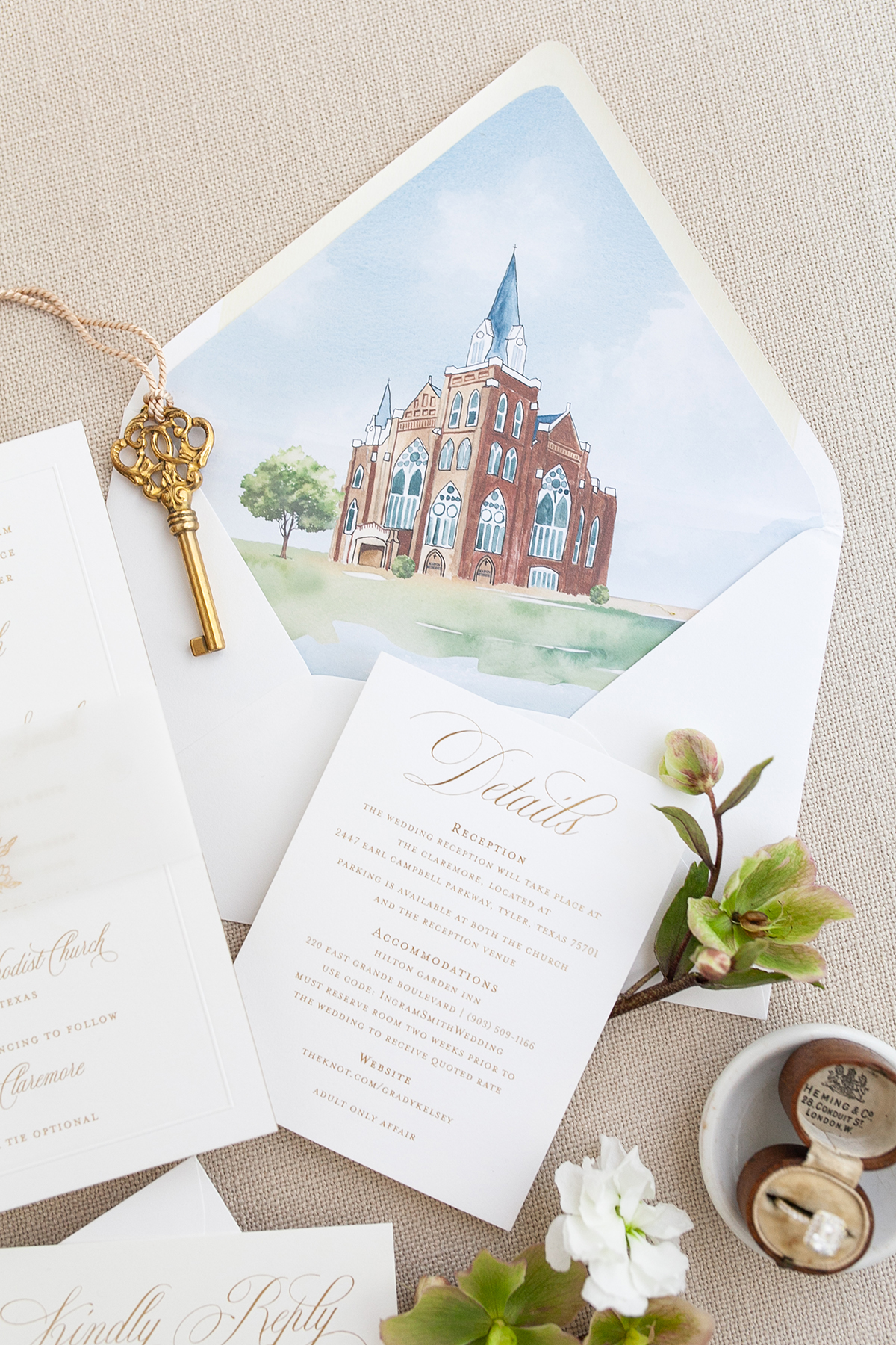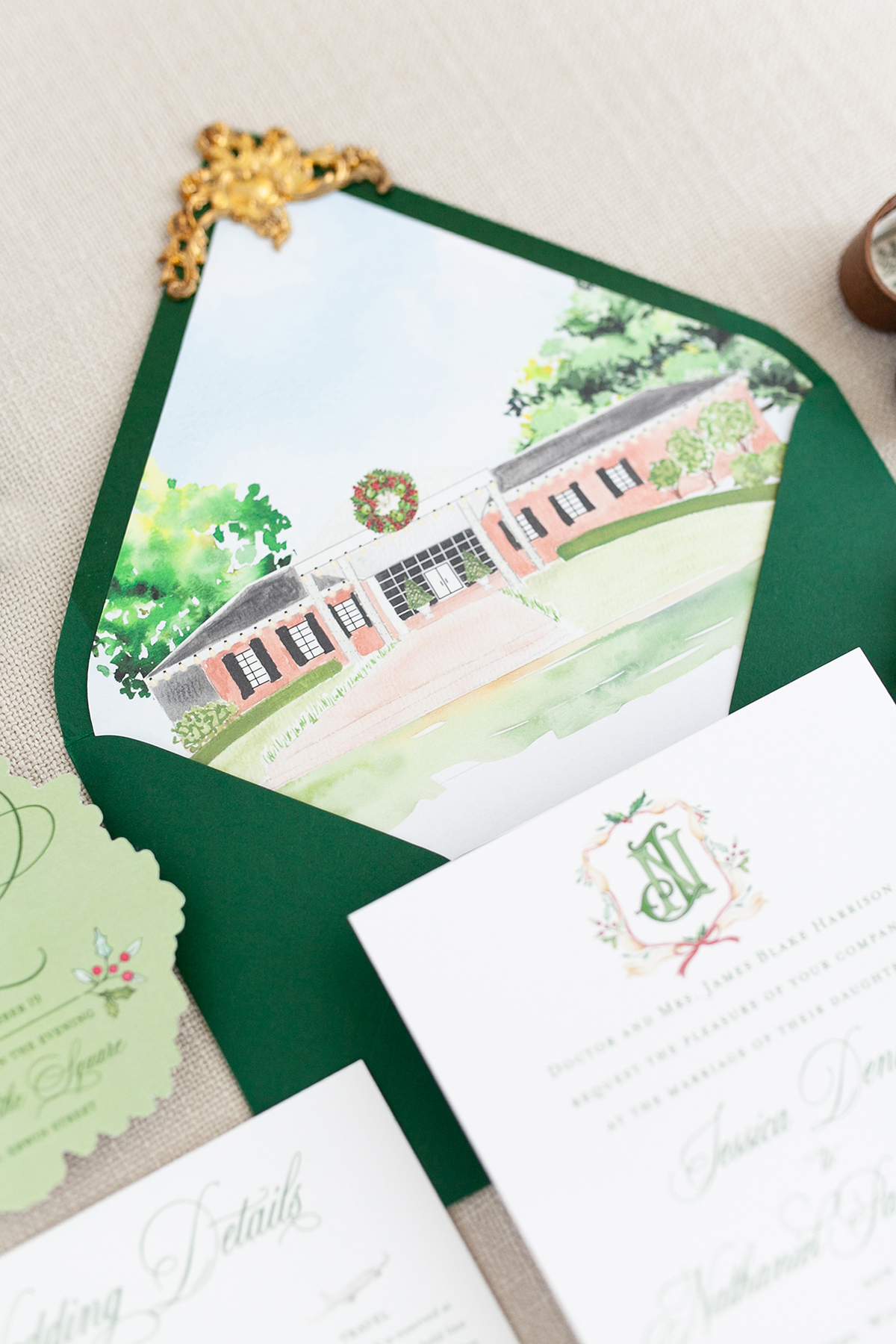 Beautiful Custom Wedding Invitation Suites. From custom watercolor venue illustrations to unique handcrafted crests, letter-pressed cotton paper to silk ribbon and wax seals.