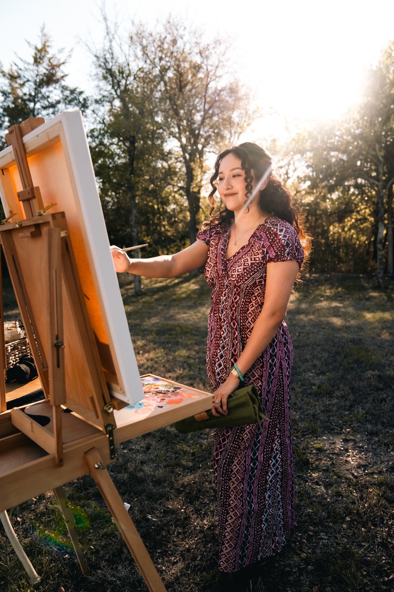 I’m Suzy Q, a passionate live wedding painter based in the heart of Dallas, Texas. I have cultivated my love for painting into a unique and unforgettable wedding experience. My approach to live wedding painting is much like a slow burn —the painting unfolds gradually, layer by layer, as I meticulously build the narrative with each stroke, creating a work of art that you can cherish forever.