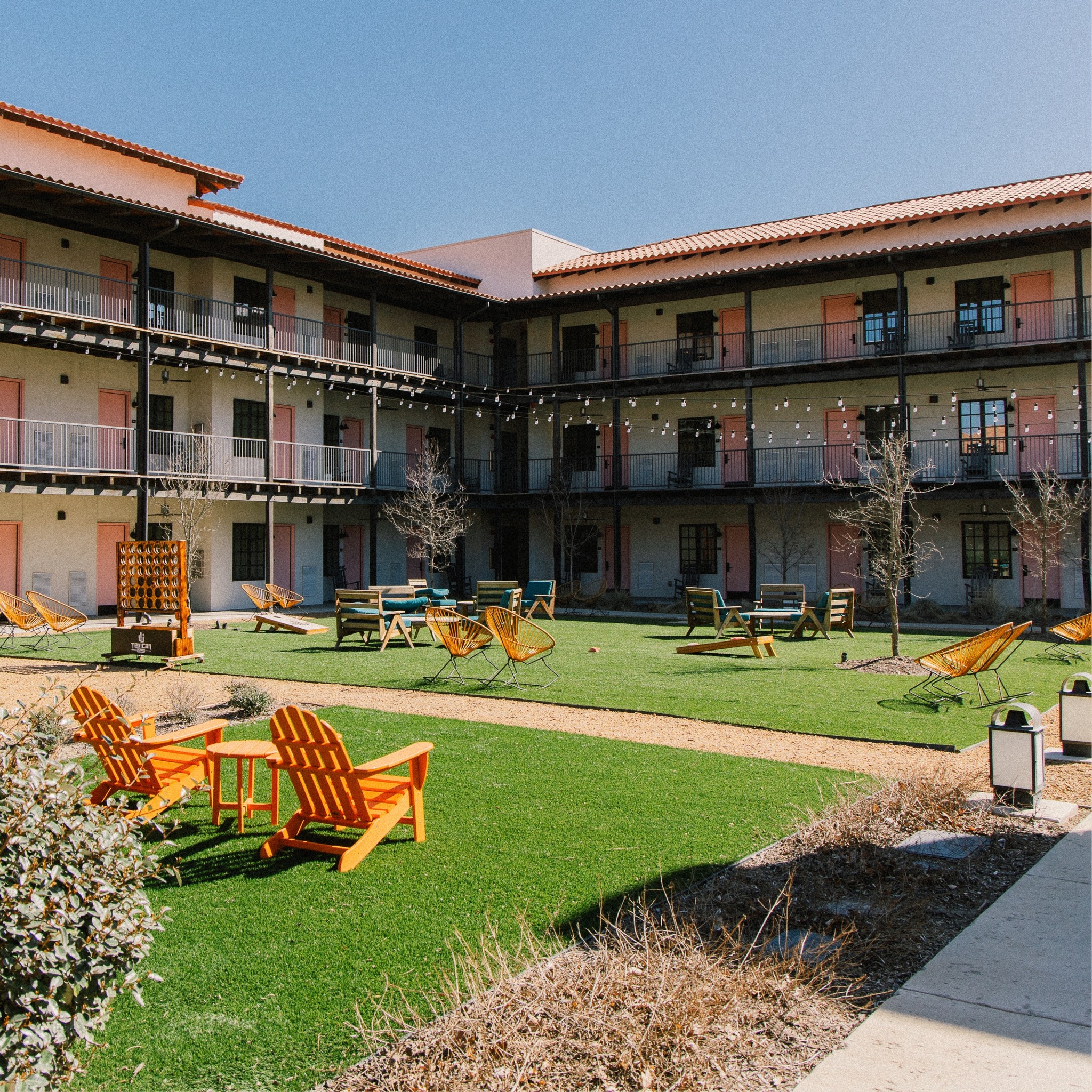 Love abounds at Texican Court. Our award-winning, retro-inspired hotel is the ideal venue for micro weddings where your closest family & friends are invited to stay together in Irving, Texas. Dance the night away in our open-air courtyard before retreating to luxurious hotel rooms and suites, complete with custom bath products, plush robes, and cozy bedding. Or let your wedding guests sleep under the stars, thanks to our romantic accommodations.