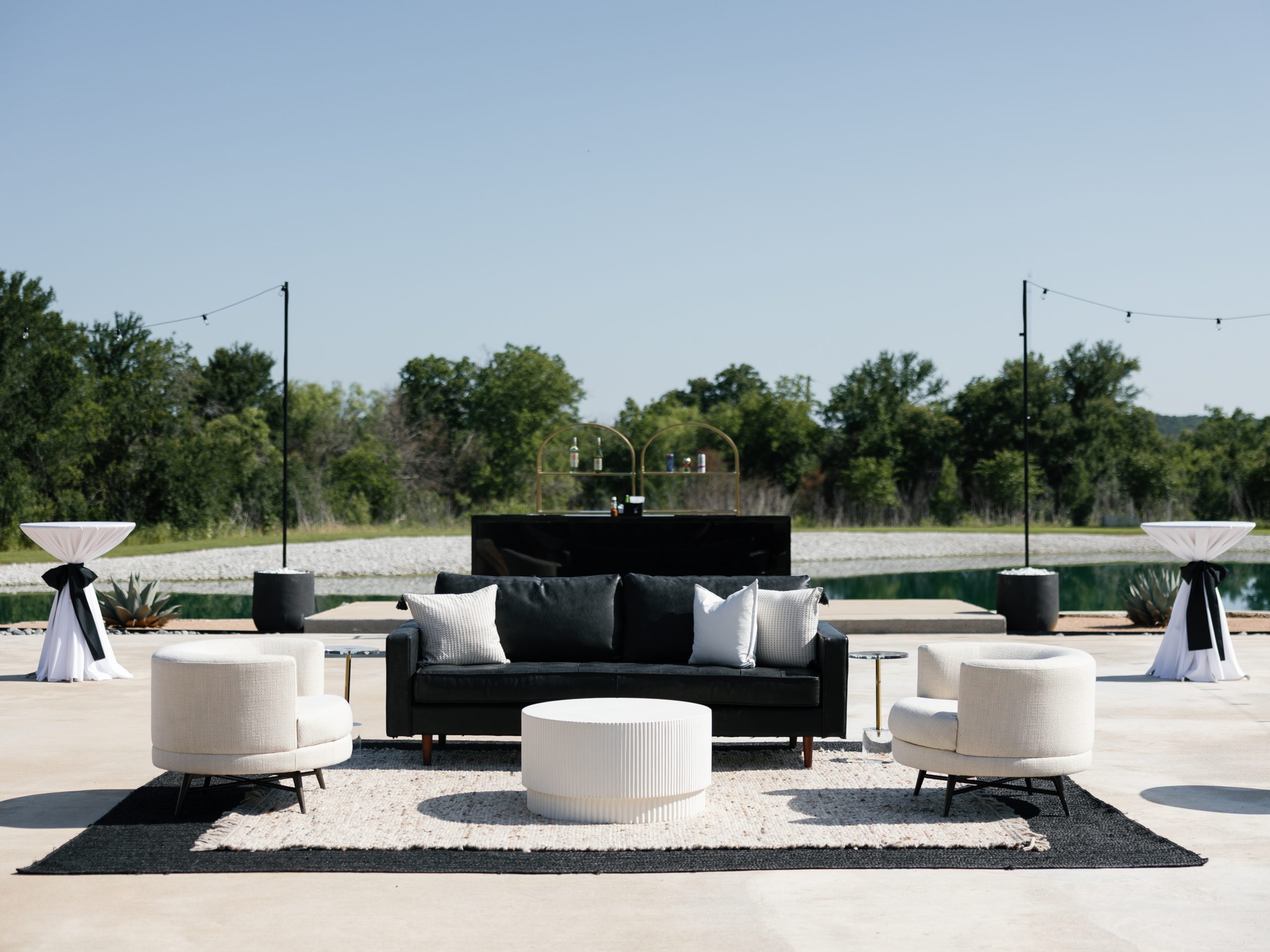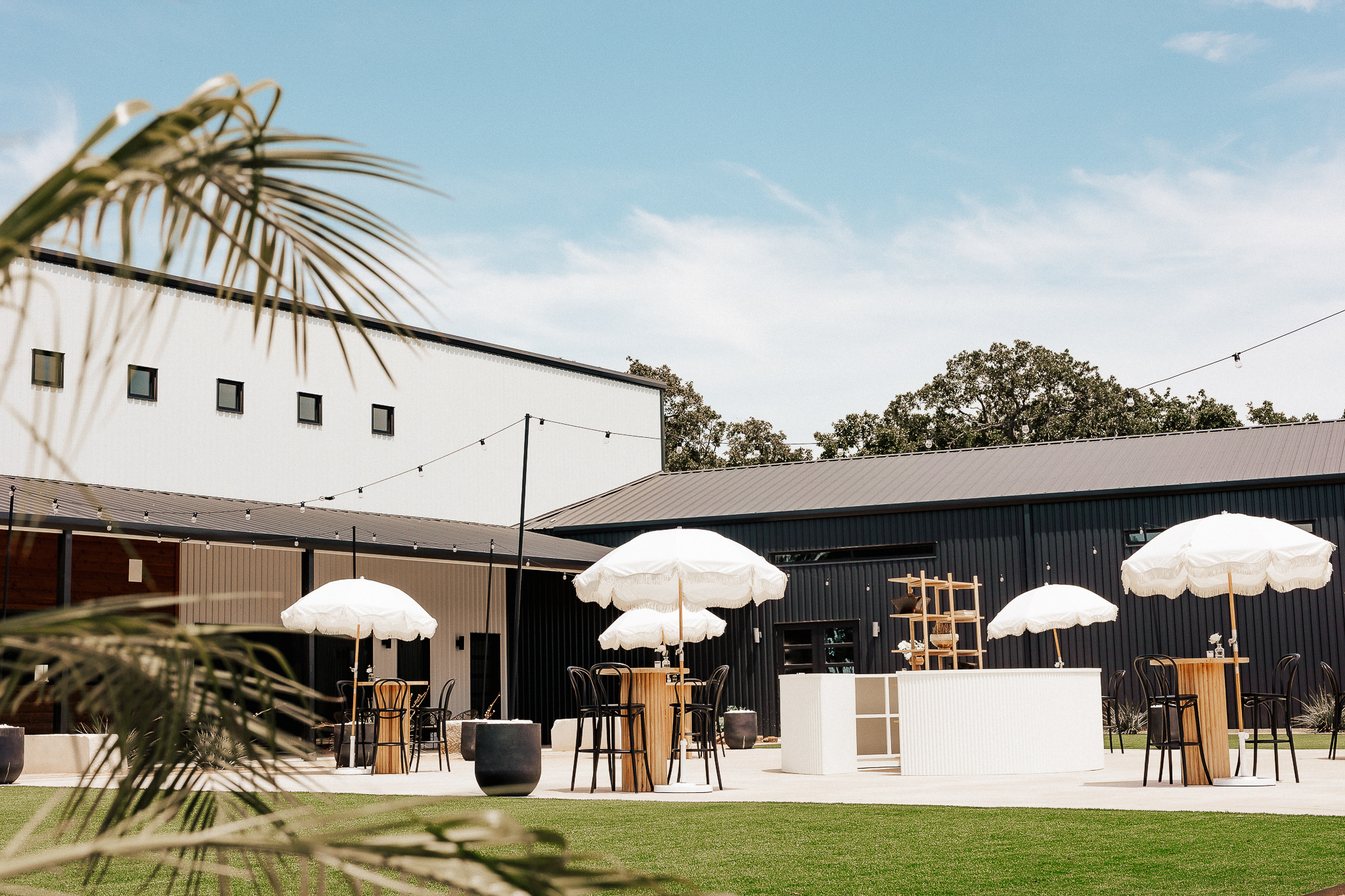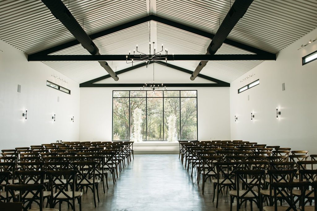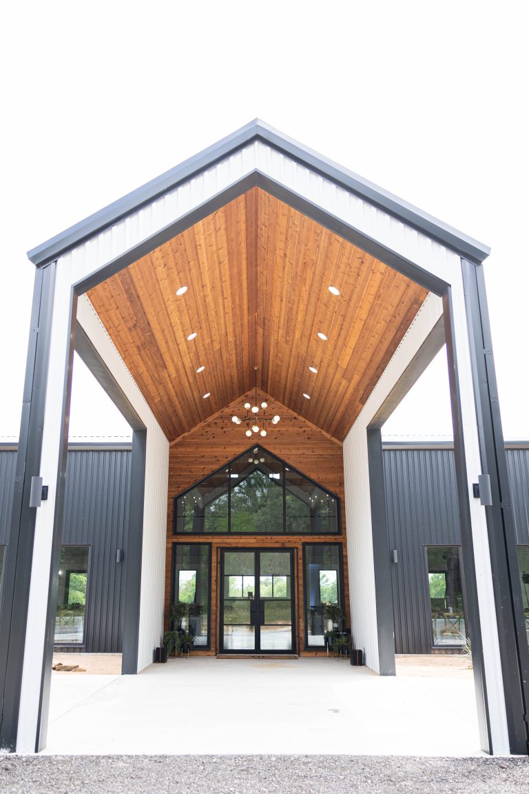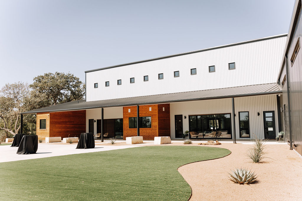 UNION HOUSE TEXAS is an iconic, modern minimalist venue located on 14.5 acres in Cleburne, TX. From the moment you turn onto the property and drive down the winding road, you will be surrounded by a little slice of heaven and feel immediately at peace amongst the cedars and live oaks. The black and white structure is complimented by natural wood accents, creating the perfect combination of modern flair + Texas charm.